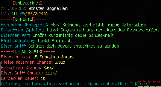 Wenn du kein Item in der Hand hältst und Monster oder Spieler schlägst, dann sammelst du XP für diesen Skill. Infos Unbewaffnet